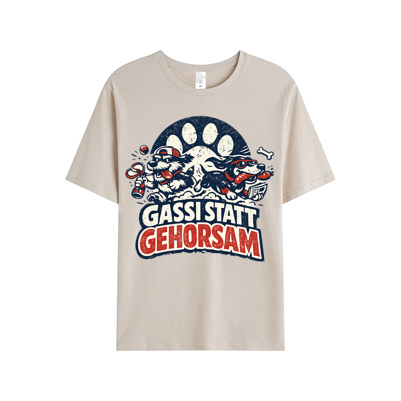 Mit dem T-Shirt „Gassi statt Gehorsam“ zeigst du als Hundeliebhaber mit Humor und Haltung, worauf es wirklich ankommt: gemeinsame Zeit, Freiheit und jede Menge Spaziergangs-Feeling. Der lässige Unisex-Schnitt sorgt für eine moderne Passform und macht das Shirt zum idealen Begleiter für Alltag, Freizeit und Hundespaziergänge. Dank des hochwertigen Stoffgewichts von 180g überzeugt das T-Shirt mit angenehmer Stabilität, formschönem Fall und langlebiger Qualität. Material: 100% gekämmte Baumwolle – für ein besonders weiches Tragegefühl, hohen Komfort und ein angenehmes Hautgefühl den ganzen Tag über. Ob als Geschenk für Hundebesitzer oder als neues Lieblingsshirt für dich selbst: Dieses Shirt verbindet starken Look mit hohem Wohlfühlfaktor.