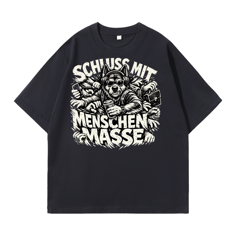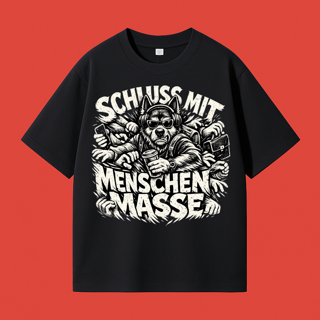 Mit dem T-Shirt „Schluss mit Menschenmasse“ zeigst du als Hundeliebhaber klar, was dir wichtig ist: mehr Ruhe, mehr Freiheit und mehr Zeit mit deinem Vierbeiner. Das hochwertige Shirt besteht aus Material: 100% gekämmte Baumwolle und überzeugt durch seine angenehme, weiche Haptik sowie den langlebigen 300g Stoff, der für einen besonders wertigen Look sorgt. Der Unisex-Schnitt bietet eine moderne, bequeme Passform und macht das T-Shirt zum idealen Begleiter für Spaziergänge, Freizeit und entspannte Tage mit deinem Hund.